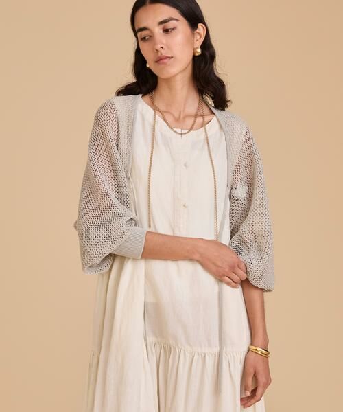 ワンピースとのレイヤードはもちろん、スカートやワイドパンツなど単品アイテムとのスタイリングをブラッシュアップしてくれる、万能なアイテムです。