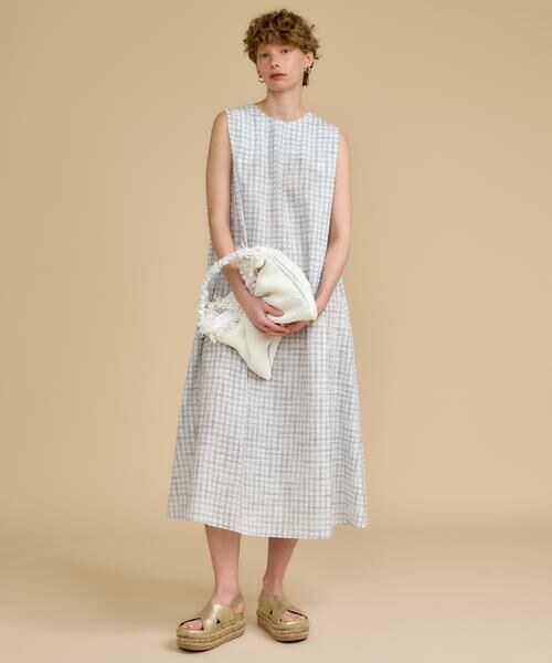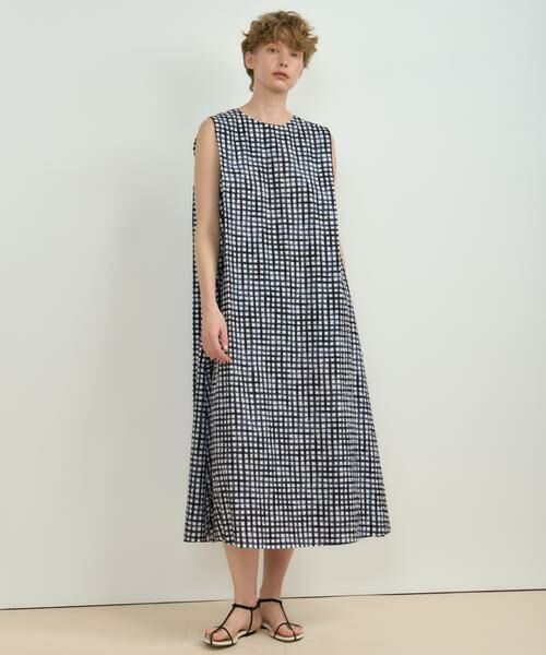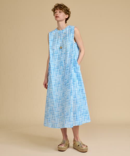 シンプルなチェックを水彩タッチで表現した、フレッシュで清涼感のあるプリントワンピース。