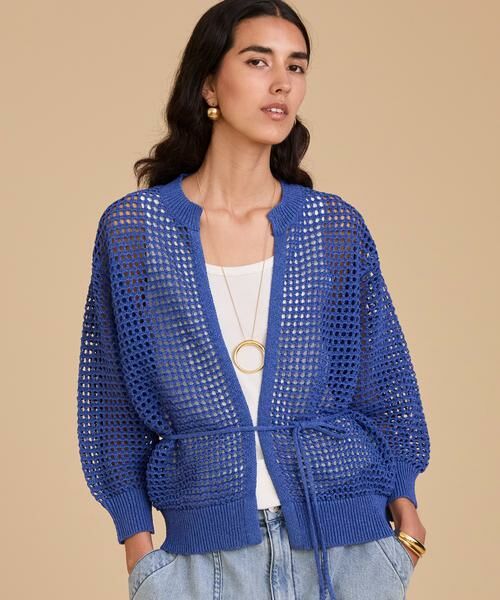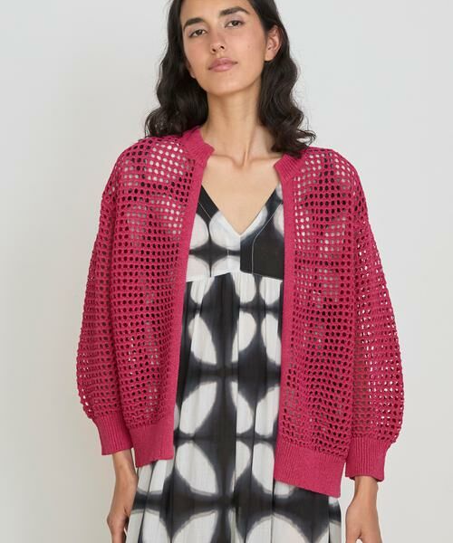 【2025 Spring&Summer】凹凸と優しい透け感のあるメッシュ組織のボタンレスカーディガン。単品としてもワンピースなどのレイヤードアイテムとしても重宝する一着。取り外し可能なウエストコードを結んでスタイリングの変化を楽しめます。ハリのある軽いペーパー素材とポリエステルを合わせた清涼感のある素材です。**********************透け感:ややあり裏地:なし伸縮性:あり光沢感:なし生地の厚さ:ふつう生地の重さ:ふつうポケット:なし手洗い:可**********************【モデル】身長:176cm