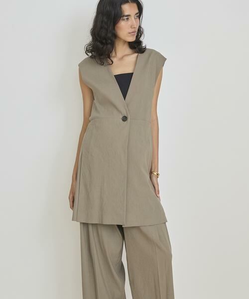 リネン混の素材にバイオ加工を施し、適度なハリコシ感を残しつつ柔らかく仕上げた、カジュアル感のある風合いです。