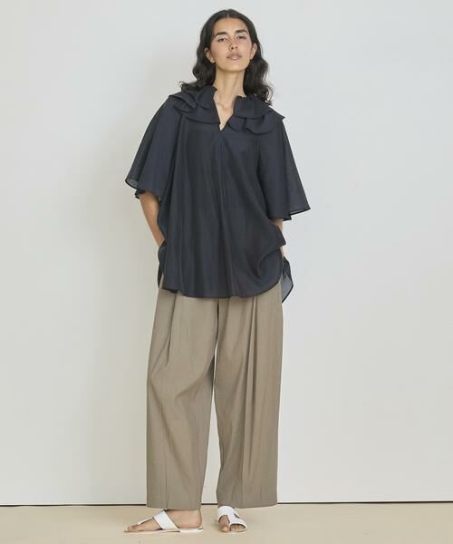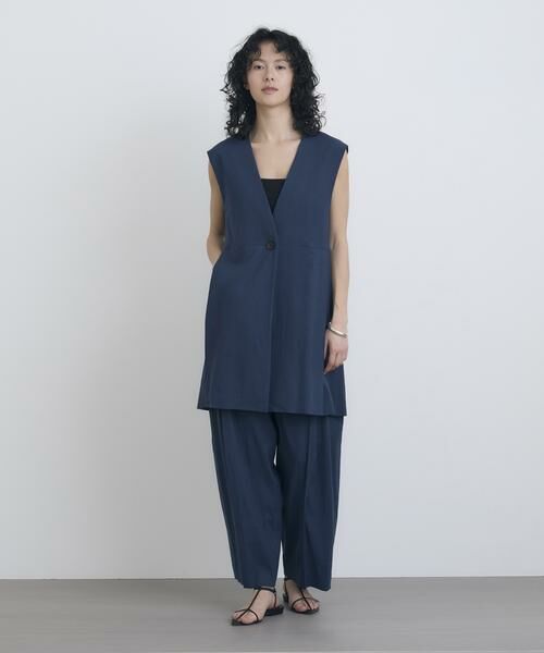 【2025 Spring&Summer】サイドから深く入ったタックがポイントのボトムス。程よいテーパードラインでスッキリとしたシルエットに仕立てました。同素材のジレとのセットアップもおすすめ。リネン混の素材にバイオ加工を施し、適度なハリコシ感を残しつつ柔らかく仕上げた、カジュアル感のある風合いです。**********************透け感:なし裏地:なし伸縮性:あり光沢感:なし生地の厚さ:普通生地の重さ:軽いウエスト:後ろゴムポケット:あり手洗い:不可**********************【モデル】身長:172cm