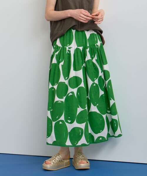 モダンアートの様な大胆なタッチのドットをプリントしたギャザースカート。
