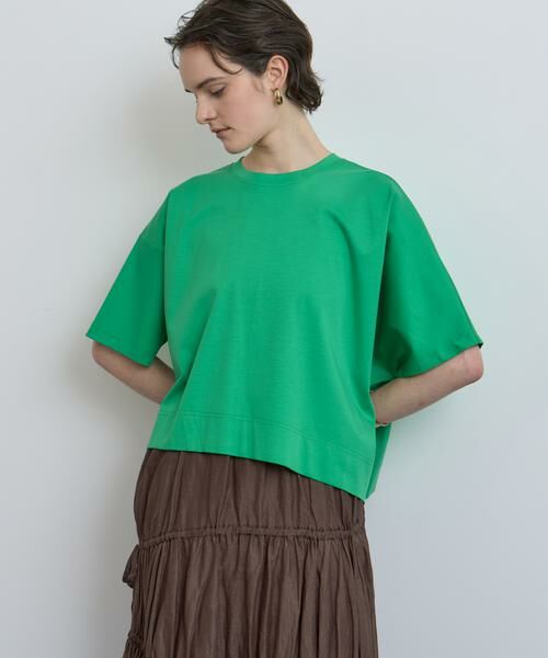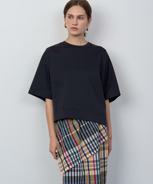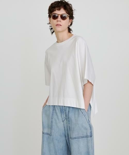 Tシャツをベースに、左右アシンメトリーのデザインやサイドスリットで、シルエットに動きをつけたアイテム。