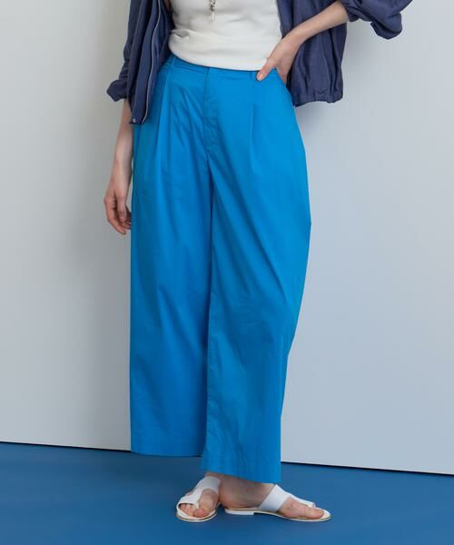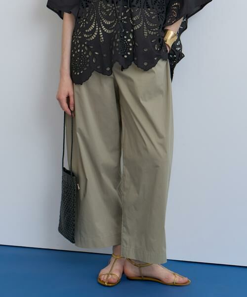 【2025 Summer】セミマットな素材感が特徴のワイドパンツ。バッグサイドからフロントにかけて深めに施されたタックが、丸みはありつつもシャープなシルエットを生み出しています。コットンベースにポリエステルの混紡でクリーンなイメージに。シワになりにくいのもポイントです。**********************透け感:なし裏地:なし伸縮性:なし光沢感:なし生地の厚さ:普通生地の重さ:軽いウエスト:ゴムポケット:あり手洗い:可**********************【モデル】身長:177cm
