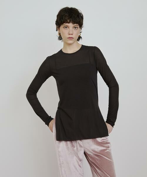繊細な肌触りが特徴の、クルーネックロングスリーブシアーT。
