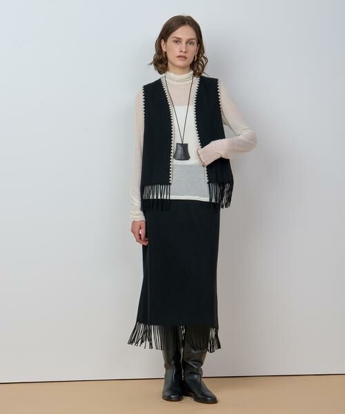 裾のフリンジとセンターバックの刺繍がポイントのスカート。