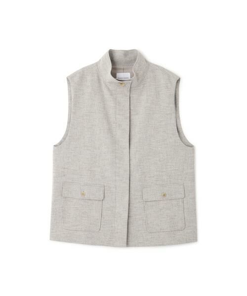 大人のこなれ感を演出するアノラックジレ【デザインのポイント】スポーティーなアノラックディテールのツィードジレです。身頃ウエスト裏の杉綾テープをドロストすることで、シルエット変化も楽しめます。【素材のポイント】リング糸の程よい凹凸感とメランジ見えのカラーバランスが上品なTRツィードを使用しています。ツィード見えながらもドライタッチでさらっとした清涼感のあるタッチに仕上げています。【おすすめコーディネート】カジュアルボトムと合わせてスポーティーにスタイリングするのがおすすめです。同素材のパンツとセットアップでも着ていただけます。透け感/なし|裏地/あり|光沢/なし|生地の厚さ/普通|伸縮性/なし|シルエット/スタンダード