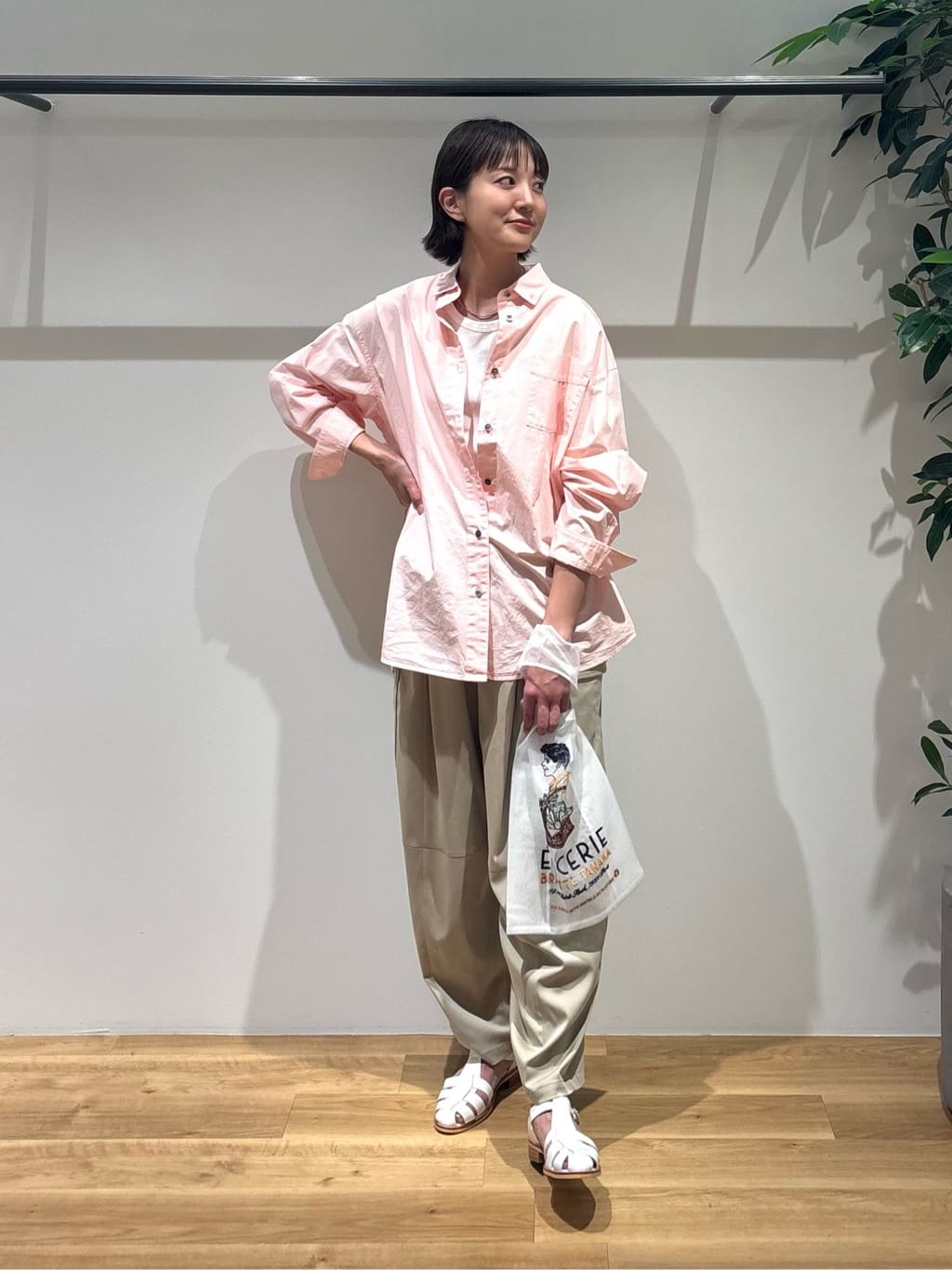 ハリがある素材ですが、生地が厚すぎず、大人っぽいシャツです。 着こなし:オーバーシルエットなので、羽織に着ていただくのも良いです。これからの時期はタンクで合わせていただくのが大人っぽく仕上がります。