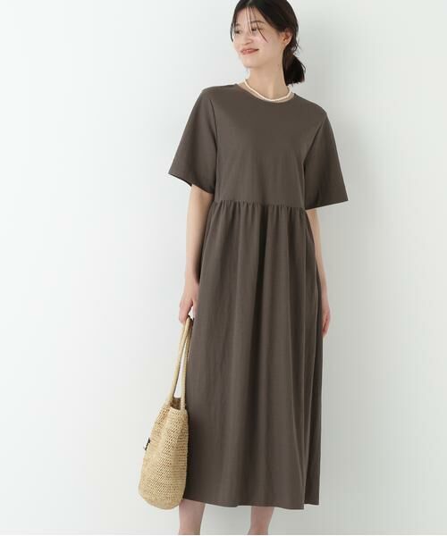 上品さと着心地のよさを併せ持つカットソーワンピース【デザインのポイント】程よいボリューム感で肌離れ感あるカットソーギャザーAラインワンピースです。【素材のポイント】布帛のようなさらりとしたドライなタッチ感とジャージーの心地よいストレッチ性を併せ持つ着心地の良いレーヨンナイロンスムースを使用しています。洗いざらしたようなニュアンスある風合いと落ち感も特徴です。【おすすめコーディネート】夏の1枚着として様になるカットソーワンピースです。上身頃はすっきりとしたデザインなので上にカーディガン等も羽織っていただけます。アクセサリー使いや、足元次第できれい目にもカジュアルにも着回せるアイテムです。透け感/なし|裏地/なし|光沢/なし|生地の厚さ/普通|伸縮性/なし|シルエット/スタンダード