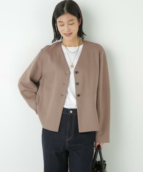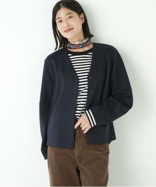 ニュアンス感が魅力のVネックカーディガン【デザインのポイント】ニュアンスあるコクーンスリーブのカットソーVネックカーディガンです。前留めのメタル釦もポイントです。【素材のポイント】オーガニックコットンとリサイクルポリエステルを使用した適度なハリ感と膨らみのある、薄手で軽いダンボール素材を使用しています。【おすすめコーディネート】程よい丈感なので様々なシルエットのボトムと相性の良いカーディガンです。すっきりとしたVネックはインナー次第で首回りの印象もアレンジでできます。季節の変わり目の軽い羽織りとして汎用性の高いアイテムです。透け感/なし|裏地/なし|光沢/なし|生地の厚さ/普通|伸縮性/ややあり|シルエット/スタンダード