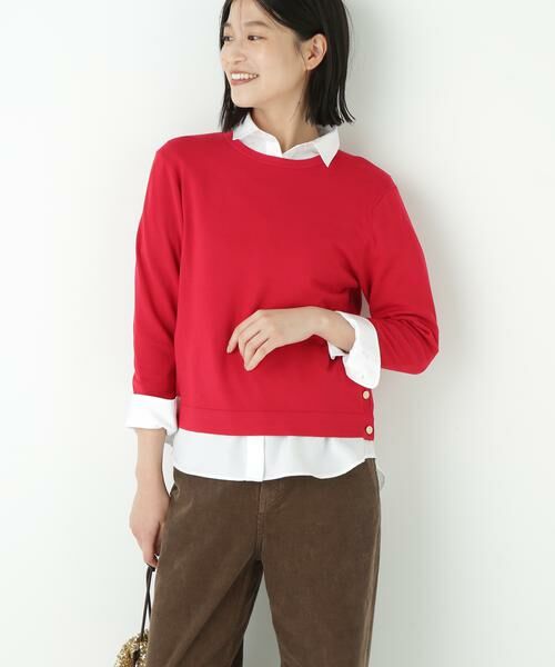 合わせるアイテム次第で、デイリーからお仕事シーンまで活躍する一着です。同シリーズのカーディガンとのアンサンブルもお勧めです。