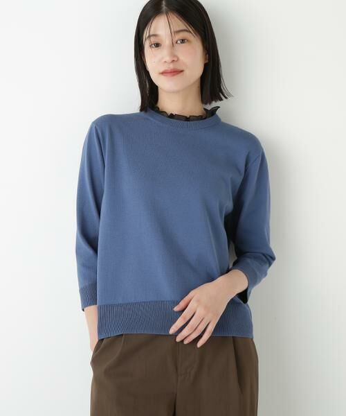 シアーなフリル衿が程よい甘さをプラスしてくれるデザインニット