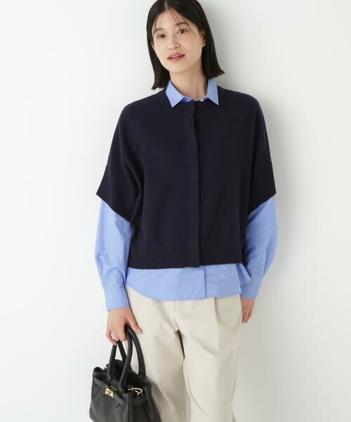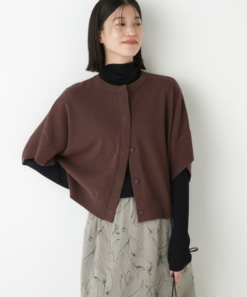 抜け感を演出するポンチョライクな半袖カーディガン【デザインのポイント】ショート丈のポンチョのようなシルエットのカーディガンです。5分袖丈はレイヤーすると楽しいバランスになります。ゆったりバランスなので肌離れがいいですが、裾リブのサイズ感が丁度腰にフィットするのでルーズすぎず収まりのいいデザインです。【素材のポイント】細番手のブークレ糸を使用、薄手ながら表情があります。今期も細かい表情のブークレ糸は人気です。【おすすめコーディネート】長袖アイテムとのレイヤードが楽しいアイテムですが、季節の変わり目にはタンクトップやTシャツなどにさらっと羽織るのもおすすめです。透け感/なし|裏地/なし|光沢/なし|生地の厚さ/普通|伸縮性/あり|シルエット/スタンダード