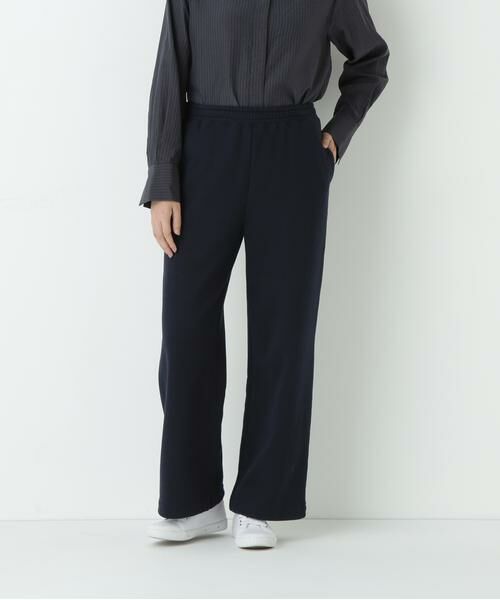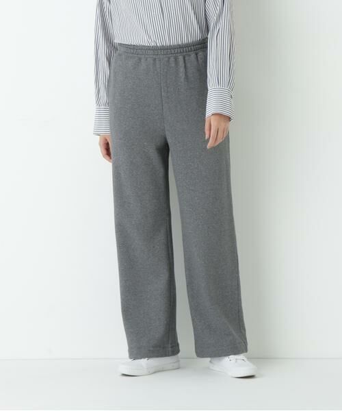 デイリースタイルに最適な大人リラクシーパンツ【デザインのポイント】ベーシックな裏毛を使用したストレートパンツです。ポケット口にグログランリボンを付けてデザインポイントかつ手が入れやすい機能性をプラスしました。裾はスピンドルが入っているのでシルエット変化も楽しめます。ウェストは総ゴム、紐付きなので調節が可能です。【素材のポイント】ベーシックな30/10の裏毛を使用しています。【おすすめコーディネート】シンプルなニットと合わせてデイリーに活躍するリラクシーなカジュアルアイテムです。透け感/なし|裏地/なし|光沢/なし|生地の厚さ/普通|伸縮性/ややあり|シルエット/スタンダード