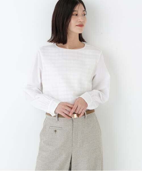 チェックレースのドッキングブラウスです。前身頃と後ろヨーク部分をレース使いで、レース部分は2重仕立てなので透けない仕様です。