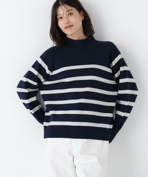 ボトルネックが程よいカジュアル感をプラスするデザインニット