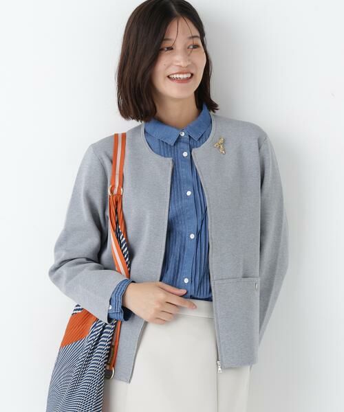 スムースで編立てたジップアップニットジャケットです。クルーネックでベーシックなシルエットで汎用性の高いアイテムです。オンオフどちらでも活躍します。