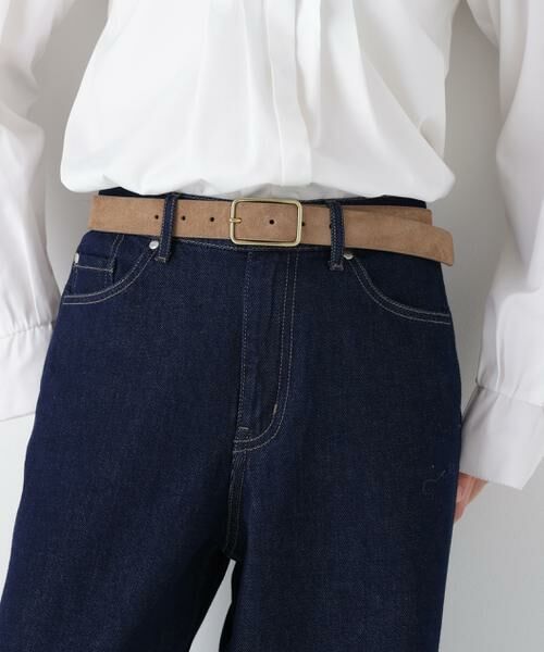 ・お届け予定日:1月下旬頃上質でしなやかなカウレザーのオリジナルベルト【デザインのポイント】今年らしい華奢なバックルのオリジナル中太レザーベルトです。【素材のポイント】上質でしなやかなカウレザーを使用しています。表革のブラックと今年らしいベージュスエードの2色展開です。【おすすめコーディネート】汎用性の高いベルトです。ワンピースやトップスの上に巻くのもおすすめです。
