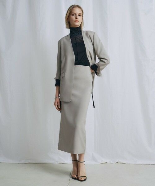 ■デザインカーディガン感覚で着られる、柔らかさのあるジャケットを目指しました。ICBらしいカッコよさも演出するため、あえて肩パットを入れて肩回りはクリーンに、着心地は柔らかくイージーな雰囲気に仕上げています。前開きはステッチレスの比翼仕立て、くるみボタンで身頃になじむつくりにし、繊細な印象に。前のボタンはチェンジボタン仕様にしているので、付属の裏地カラー共通のくるみボタンに付け替えると、よりデザインのきいた雰囲気で着用いただけます。袖口には大きく開けたベントに裏地配色共通のくるみボタンでアクセントにしています。共地と配色のベルト付きで、ウエストマークしたり、たらすだけでもアクセントになり、着方のバリエーションも楽しめます。また脇にはワイドパンツ、スカートと共通のシームデザインを取り入れ、セットで着たときに統一感が出るようにデザインしました。