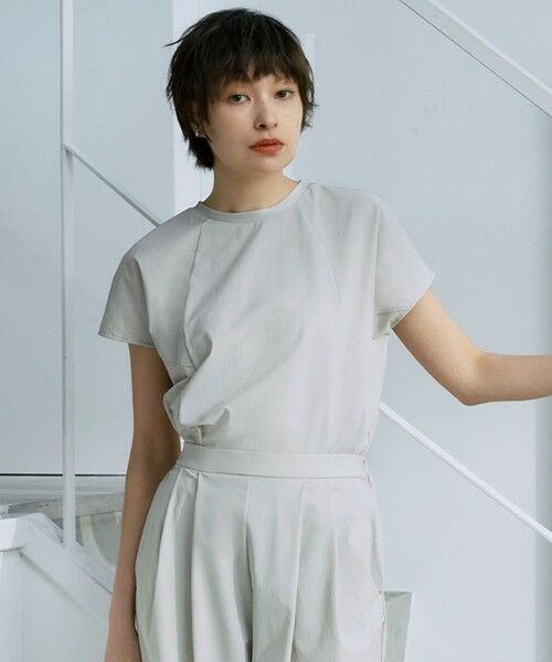 ■デザインデザイン切り替えが特徴のフレンチスリーブトップス。一枚で決まるクロップド丈のトップスで、同シリーズのボトムとのセットアップもおすすめです。特にパンツとのセットアップで、前裾をインしてすっきり見せるスタイルがイチオシです。
