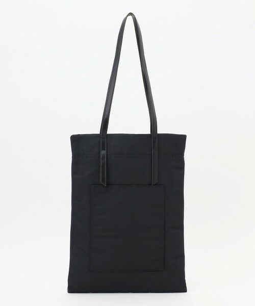■デザインメインのバッグとしてはもちろん、サブトートとしてもお使いいただける万能トートバッグです。縦型のトレンドシルエットで、マチなしですが、PCやペットボトルなど十分な容量が収納可能です。フロントにはポケット付きで携帯やICカードの収納に便利です。ブラック系1(105)は片面がチャコールグレー、もう一方がブラックの配色デザインになっています。