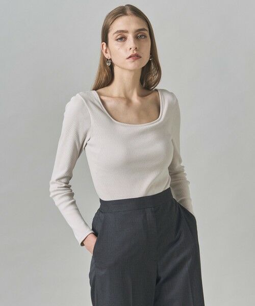 ■デザインスクエアネックのカップインロングTシャツです。服にカップをつけることで、スタイリングの迷いや時間を減らせて、下着も気にせずに着用いただけます。服と下着の境界を無くすことによって、ボディラインをきれいに見せ、より自分らしく服を着こなし、ファッションを楽しんでもらえるような一枚に仕上げました。衿端が真っ直ぐなデザインはジャケットのインナーとしてもきりっと見え、素材も程よくカジュアルで、様々なスタイリングに合わせやすいロングスリーブです。後ろ中心の配色ラインもポイントになっています。