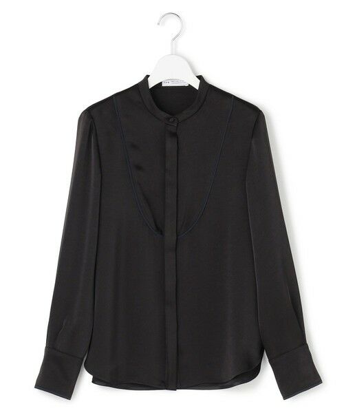 ■デザインブザム切り替えのバンドカラーシャツです。すっきりとした身幅とシャープなブザムデザインで、インナーでも一枚着でも活躍できるデザインに落とし込みました。ブザム、カフスまわりには別布で微配色のトリミングを施し、シンプルな中にもこだわりが見える仕様がポイントです。
