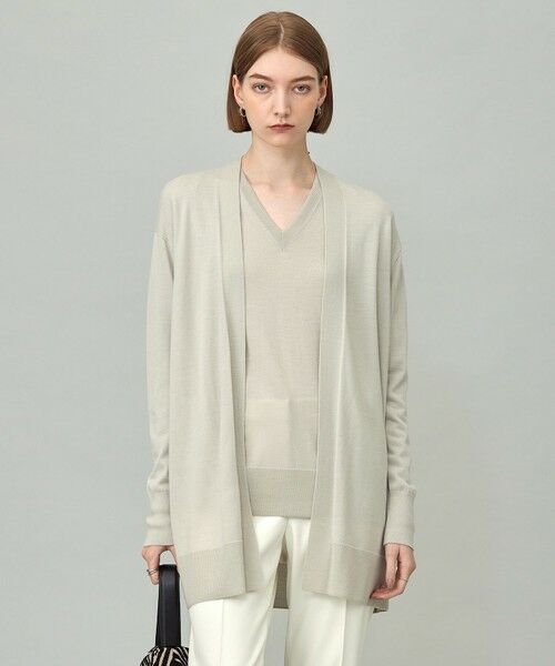 ■デザインヒップまで隠れるレングスで上品見えする着流しのロングカーディガンです。スタイリッシュにきれいに着ていただける様、縦長のすっきりシルエットに仕上げました。肌寒い時期の羽織としてはもちろん、コートINにも着やすいので長いシーズン活躍します。通勤や旅行などのお出かけにもおすすめです。Iラインシルエットですっきり見えし、体型カバーも可能な上、着回し力も抜群な優秀カーディガンです。同シリーズのVネックニットとアンサンブルで上品な着こなしも楽しめます。