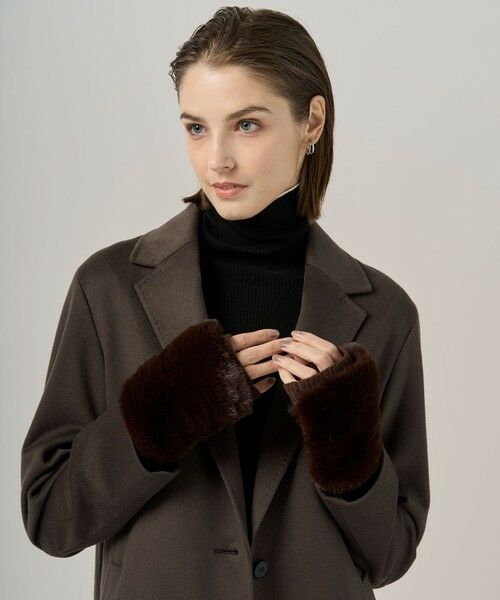 ■デザイン昨年好評だったファー手袋が新色を加えて登場。今季は、ベーシックなカラーに加え、トレンドのキャメルやブラウン、ネイビーも取り入れた4色展開です。つい触れたくなるような上品で柔らかなフェイクファーを使用しています。ニット部分もこだわり肌触りの良い糸を使用しており、つけ心地の良い仕様となっております。指が出る仕様のため、付けたままスマートフォンなどを操作することが可能です。
