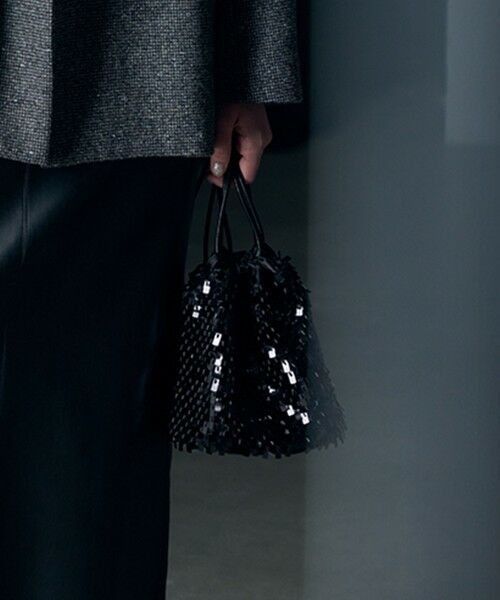 ■デザイン秋冬のスタイルに華やかさをプラスしてくれるスパンコールバッグです。スクエアなフリンジスパンコールがポイントです。コンパクト見えながらペットボトルも入るサイズ感で、必要アイテムは十分収納可能です。