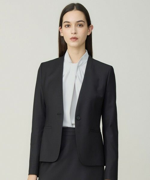 ■デザインボウタイライクなカラーデザインが特徴のブラウスです。一枚での着回しはもちろん、オフィスシーンでのスーツインナーにも活躍します。ジャケットや羽織を羽織った際も、首元のドレープデザインが上品に女性らしさを演出します。きちんと見えながら、ストレッチ性のある素材、背面ファスナーで脱ぎ着もしやすく快適な着心地を叶えます。