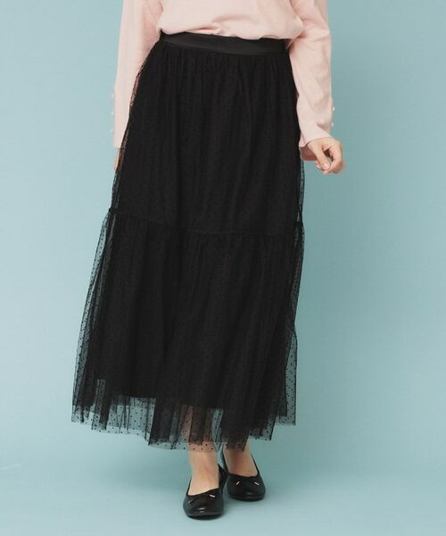 ・優雅なティアードデザインにフロッキードットがあしらわれた、可愛らしさと上品さを兼ね備えたスカート。