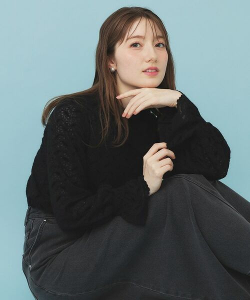 繊細なフェザーレースのハイネックデザイントップス