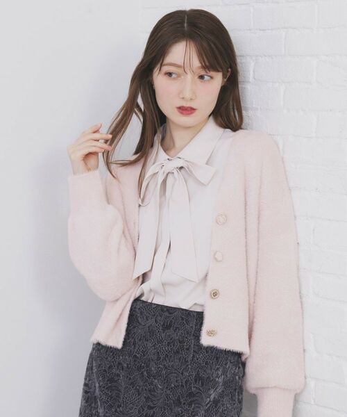 ・洗練されたVネックデザインとボリュームスリーブが、女性らしいシルエットを強調。