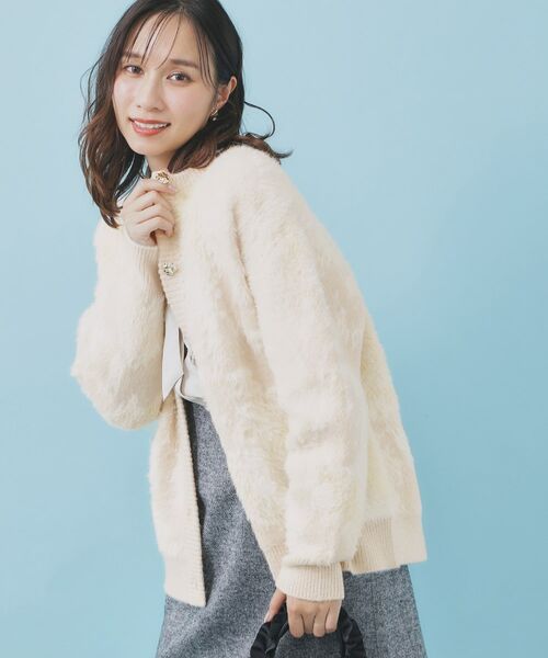 ・ふわふわとしたフェザー感のあるジャカード編みで、視覚的な立体感を演出。
