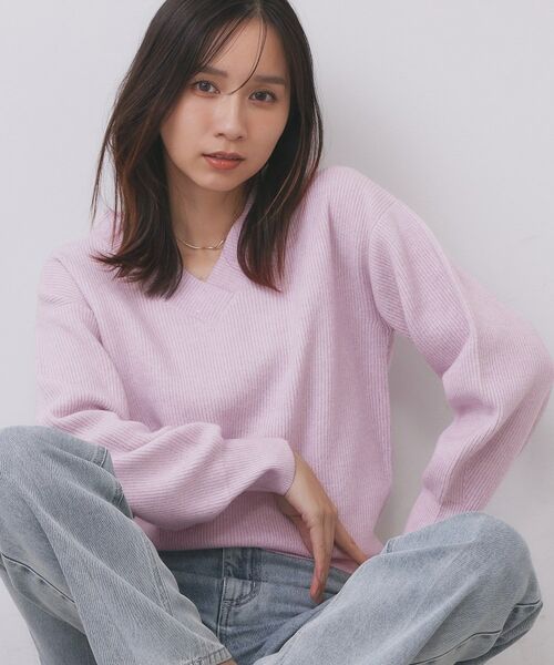 ・片畦編みのシンプルなデザインが、豊かな表情を持つニットを演出。