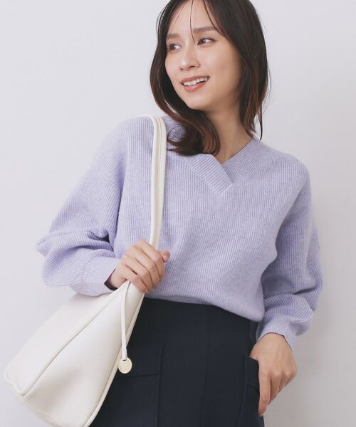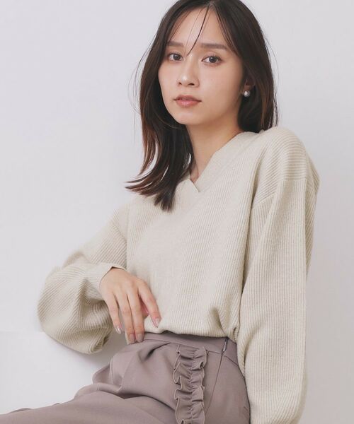 ・Vネックスタイルが顔まわりをすっきり見せ、女性らしさを引き立てます。