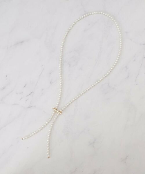 【デザインポイント】コーディネートの一部としてぐっと華やかさの出るボウタイ型のパール調ネックレスです。バーの部分が留め具になっており長さを調節できます。【スタイリングポイント】夏のデザイントップスにプラスするだけで華やかさがアップします。ちょっとしたセレモニーシーンにもおすすめです。シャツなどのベーシックアイテムにプラスするのもトレンド感が出ておすすめです。※照明の関係により、実際よりも色味が違って見える場合があります。また、パソコン・スマートフォンなどの環境により、若干製品と画像のカラーが異なる場合もございます。本商品は、ご注文確定後に取り寄せにてお客様への出荷手配をさせていただきますので、お届けまでに7~10日前後かかる場合がございます。また、商品は他社サイトと在庫を共有しているため、ご注文いただいた商品が欠品となり、キャンセルとなる場合がございます。