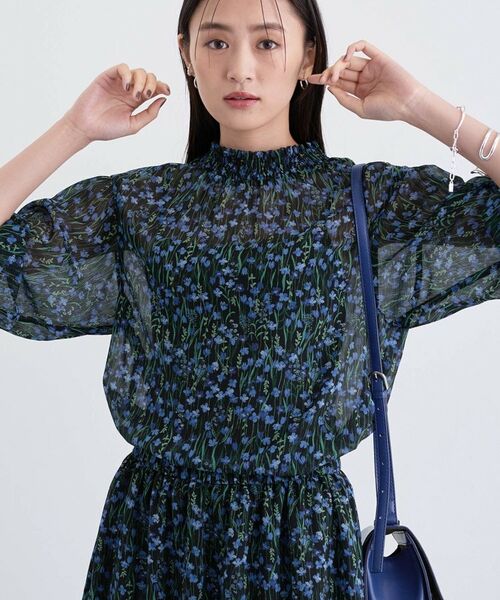 【秋映え柄/セットアップ可能】フラワーシフォンブラウス