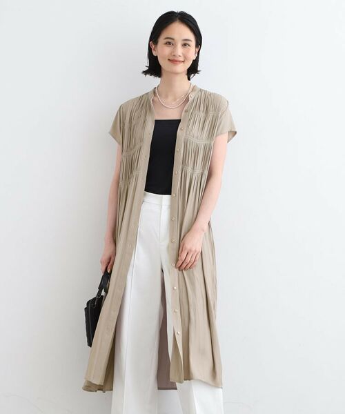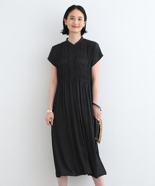 落ち感と光沢感があるキレイ目なシャーリングワンピースです。