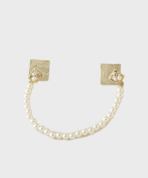 フェイクパールをブリッジのように渡らせてつけることのできる新しいブローチピンです。