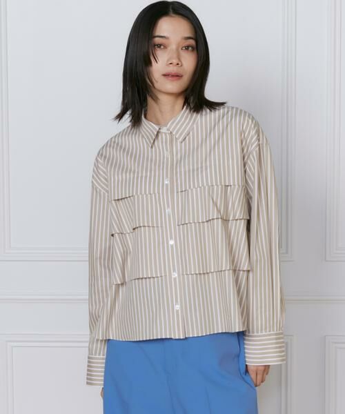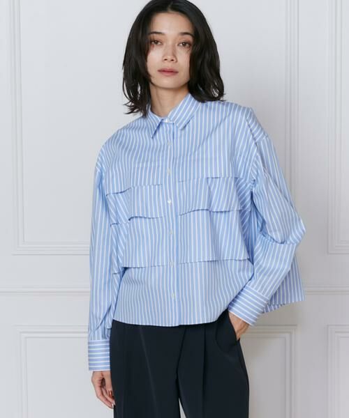 フリルとコンパクトな襟がポイントのシャツブラウスです。ショート丈でボトムスとのバランスが取りやすいデザイン。甘さのあるフリルとそぎ落とされたコンパクトな襟のバランスが1着でサマになります。・水洗い可■サンプル撮影商品■こちらの商品はサンプルでの撮影となっております。実際の商品とは、サイズや色味、素材、デザイン等の仕様が若干変更になる場合がございます。