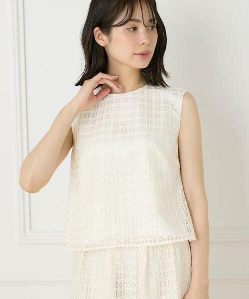 ■デザイントレンドのクロップド丈ブラウス。リネンやデニムなどカジュアルな素材のボトムと合わせても綺麗めな印象に・ジャケットのインナーやきれい目ボトムで通勤としても着用できます。■素材大き目のアイレット柄で軽やかな幾何学柄のレース。・裏地あり・後ろファスナーありセットアップで着られるスカート品番:7152152823
