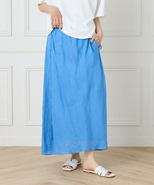適度なフィット感が美しいシルエットを作り出す、リネン素材のバイヤススカート。フロント生地をバイヤスに取っているので、体に沿いながらラインを拾い過ぎずリラックス感のある穿き心地です。ヒップにかかる丈のトップスを合わせれば、すっきりと見せながら上品な大人のエフォートレススタイルを演出してくれます。同素材のシャツを合わせてワンピース風に着こなすのもおすすめです。