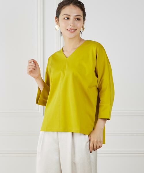程よいハリ感が特徴の綿100%のポンチ素材を使用したドルマンスリーブプルオーバー。ゆったりとしたデザインで身体のラインを拾わず汗ばむ季節もストレスフリー。開きすぎないVネックはお顔周りをスッキリと見せてくれます。袖口は太目に切り替たデザインにし、ひと折りして袖丈を短く調節もできます。