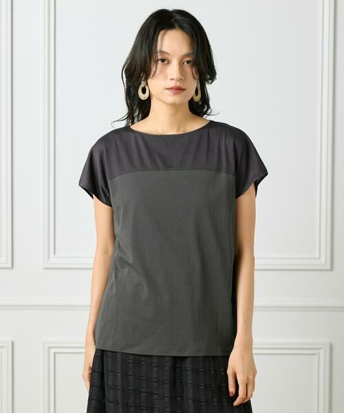 身頃に清涼感のあるきれいな表面感が特徴のコットン素材を使用した、シースルードッキングプルオーバー。ネックは開き過ぎないボートネック。後ろ裾は少しラウンドを付けたカッティングにしている為、ボトムアウトして着て頂くとバランスよくとお召いただけます。身体のラインを拾わず、気になる二の腕もカバーした身頃感にしています。