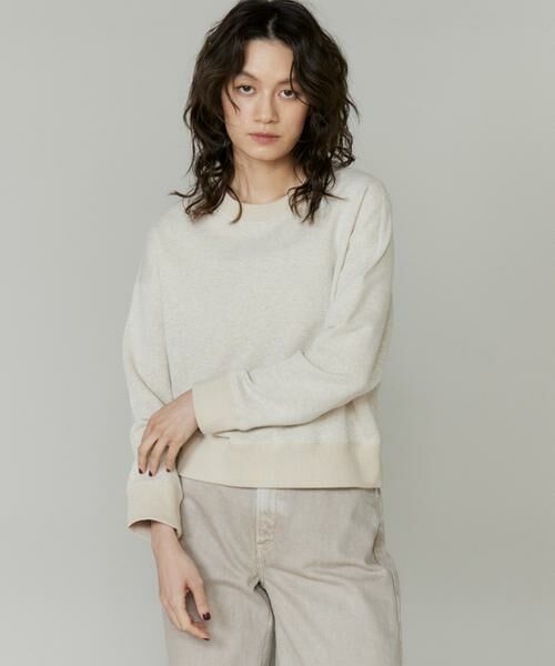 さりげないラメがスウェットを上品に見せてくれます。重さが出ないように混率に拘り軽さのある裏毛が実現。シンプルな形ながらコンパクトな着丈がコーディネートの幅を広げてくれる一着です。カジュアルになり過ぎず、女性らしい大人のスウェットとして着用いただけます。グレーはクールな印象に、ベージュは上品な印象に見せてくれます。