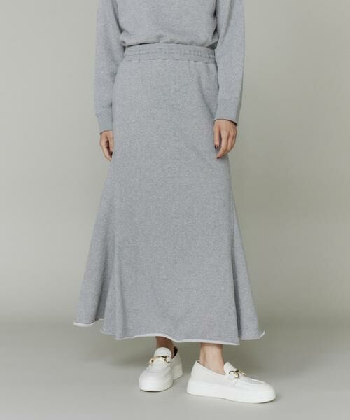 フレアの切り替えが入った裏毛スカート。腰回りはスッキリと裾にかけてフレアラインがでるシルエット。ウエストがゴムなのも嬉しいポイントです。歩くと揺れるシルエットで、カジュアルさの中にも女性らしさをプラスしました。裏毛素材なのでイージーな履き心地で普段使いにぴったりの一着です。