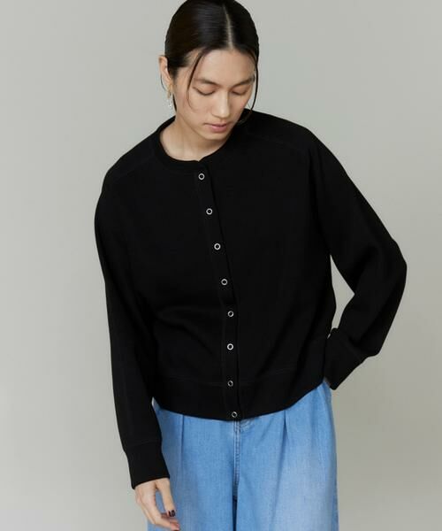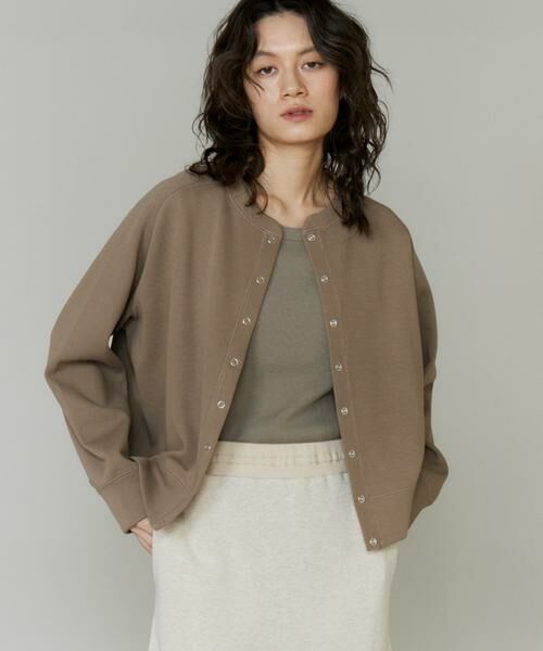 ドットボタンがアクセントになったカットソーカーディガン。シンプルなデザインでデイリー使いにピッタリです。ハリ感のあるダンボール素材なので立体的なシルエットをキープできます。スナップボタンがトレンド感を演出しこなれた印象にしてくれます。オールシーズン扱いやすい素材感で、寒暖差に応じて重宝すること間違いなしです。