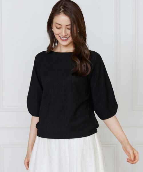 大人気のCuooホールガーメントシリーズ。凹凸感のある鹿の子編みにすることでさらっとした清涼感のあるタッチにしあげています。肘が隠れるくらいの袖丈に、デコルテを美しく見せるボートネックのデザイン。女性らしく品のある印象で幅広いスタイリングで活躍してくれる上質なアイテムです。